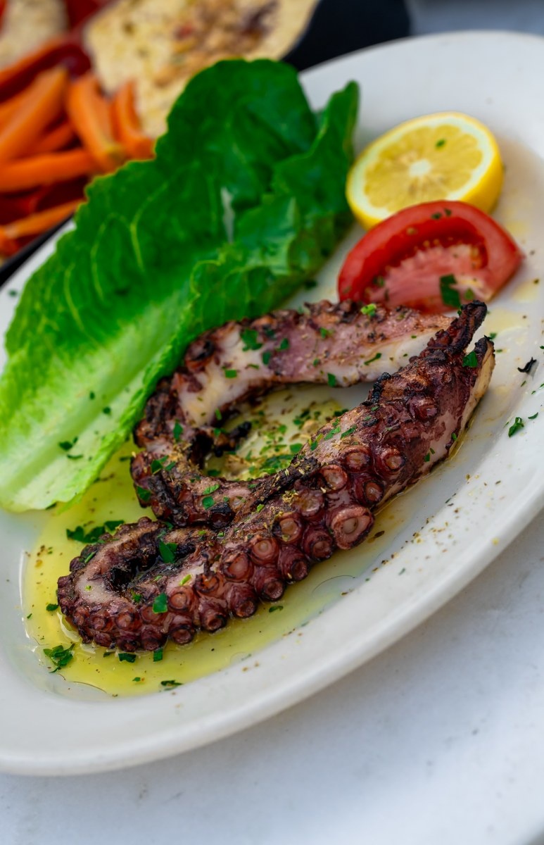 The menu focuses on authentic Greek and Mediterranean cuisine, featuring fresh seafood, grilled meats, traditional mezze, handmade spreads, and classic dishes such as octopus, lamb, branzino, and house specialties prepared with olive oil, herbs, and high-quality ingredients. Guests can pair their meals with carefully selected wines, signature cocktails, and Mediterranean spirits that enhance the dining experience.