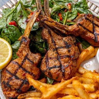 The menu focuses on authentic Greek and Mediterranean cuisine, featuring fresh seafood, grilled meats, traditional mezze, handmade spreads, and classic dishes such as octopus, lamb, branzino, and house specialties prepared with olive oil, herbs, and high-quality ingredients. Guests can pair their meals with carefully selected wines, signature cocktails, and Mediterranean spirits that enhance the dining experience.